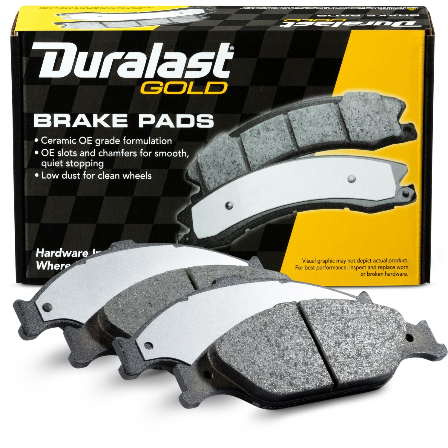 Duralast gold ceramic brake pads for a quieter ride and ultra low brake dust.